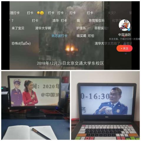 总之,这些专业、科学、干货满满的直播公开课,让我系师生受益匪浅。课后,有学生发朋友圈表示,“通过观看直播,涨知识了”,“火场逃生大招,get到啦!”,“时时注意安全,处处预防火灾”......