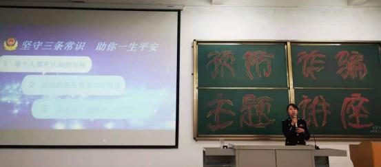 罗婷警官还特别针对当前犯罪分子常用的非接触性诈骗方式,作了进一步的讲解和宣传,并根据公安部“断卡行动”,提醒师生们天上不会掉馅饼,天上只会掉陷阱,决不能因蝇头小利而将自己的电话卡和银行卡提供给诈骗分子,成为诈骗分子实施犯罪的通讯工具和资金通道。她希望师生既要提高自身防范意识,也要给亲戚朋友普及防诈骗知识,牢牢筑起反电信网络诈骗的第一道防线。