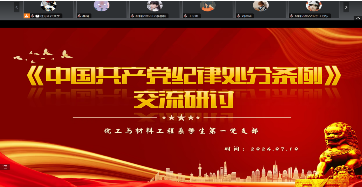 随着我国改革开放和社会主义建设的深入推进,党面临的形势任务发生了深刻变化。《条例》的修订出台,对于严肃党内政治生活,纯洁党的队伍,保持党的先进性和纯洁性,具有重要的现实意义。特此,必威西汉姆联学生第一党支部于2024年7月10日17:00在线上开展了《中国共产党纪律处分条例》交流学习。参与此次会议的有学生第一党支部全体党员,此次会议由支部书记王莹主持。