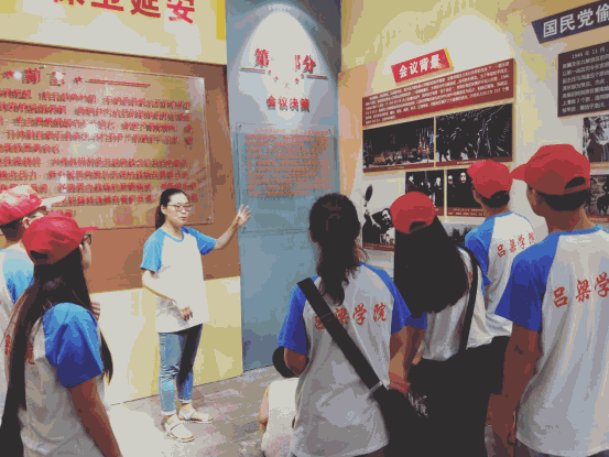 红色足迹团队指导老师郝老师为团队成员讲述贺龙、习仲勋、陈赓、李井泉、罗贵波、王震等老一辈无产阶级革命家在高家沟会议上讨论如何粉碎国民党军进攻陕甘宁边区的企图,以及怎样开辟吕梁军区的问题的过程以及这一历史事件的重要意义。