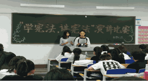 为深入学习贯彻党的十九大、习近平总书记系列重要讲话精神,加强化学化工系学生的法律修养,展现本系莘莘学子的风采,让同学们能够锻炼自己的语言表达能力和面向大众的胆量,在比赛中学习,在比赛中锻炼,在比赛中提高,化学化工系决定于2018年6月4日19:30在教学楼一区104开展以“学宪法,讲宪法”为主题的演讲比赛。参加本次活动的主要人员为17届大一学生,评委老师为杨虹老师、王盼盼老师。