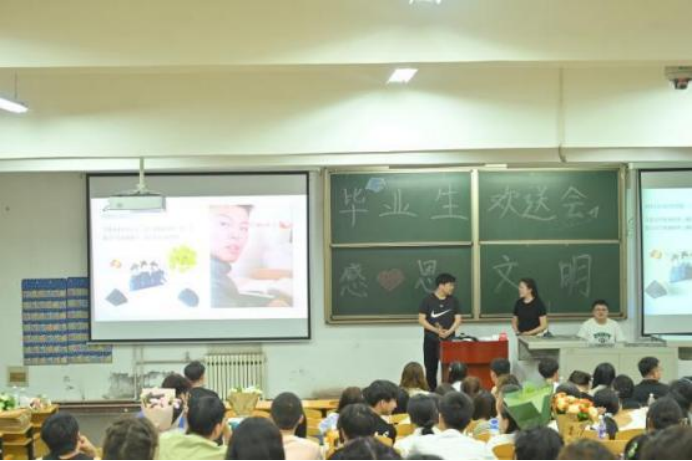 2024年5月27日下午,必威西汉姆联的同学在拍摄完毕业照后,集中在1C-102教室,与辅导员老师一起参与了离别前的感恩、文明毕业生欢送活动。此次活动由材料化学2004班同学王银涛与李昭君担任,活动开始主持人进行暖场发言。