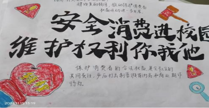 活动当天,同学们热情高涨,纷纷带着自己精心创作的手抄报作品前来。工作人员有条不紊地收集作品,并安排拍照记录,留存下这一充满法治精神的瞬间。在活动过程中,同学们将自己对维权的理解融入手抄报中,有的手抄报生动呈现了消费者维权的流程,有的则深入解读劳动者权益保护要点。大家相互交流、分享,现场气氛热烈。