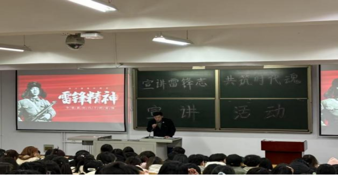 当晚7点30分,活动正式拉开帷幕。主讲人登上讲台,围绕 “宣讲雷锋志,共筑时代魂” 这一主题展开了精彩绝伦的宣讲。他以一个个生动有趣的故事和鲜活真实的案例为切入点,从雷锋关心战友、帮助群众的日常小事,到其在工作岗位上的敬业奉献,全方位、深层次地解读雷锋精神的时代价值。同时,主讲人紧密结合现代生活实际,巧妙阐述雷锋精神在当代的延续与发展,让同学们真切地感知到雷锋精神并非是遥不可及的空洞口号,而是实实在在、可融入日常点滴行动的精神指引。