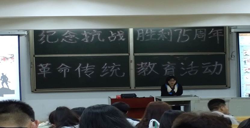 2020年9月3日,是抗战胜利75周年纪念日。中国人民抗日战争暨世界反法西斯战争胜利75周年,中国给出的响亮回答是“构建人类命运共同体,实现共赢共享”。2020年10月9日,化学化工系在阶教1c-01举办纪念反法西斯胜利75周年活动,此次活动以“勿忘不忘——我们勿忘国耻,我们不忘国耻”讲座形式开展。